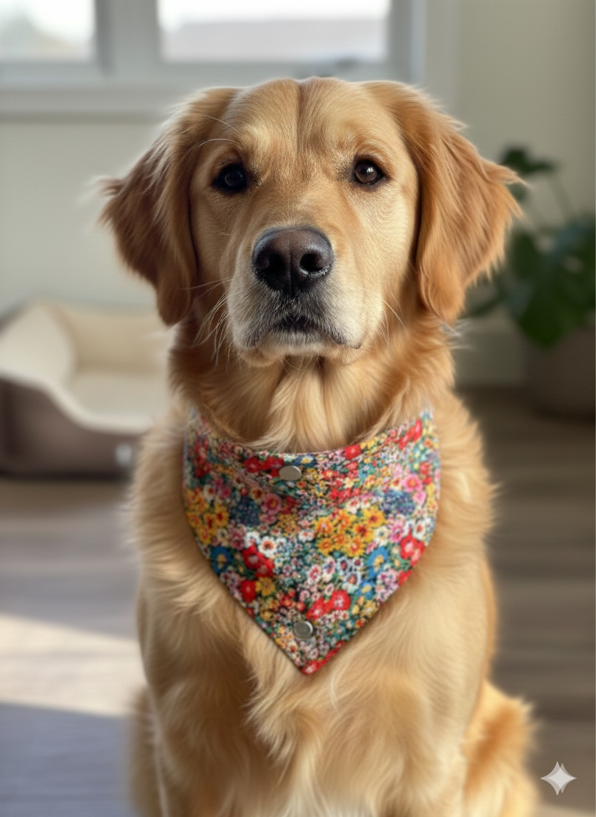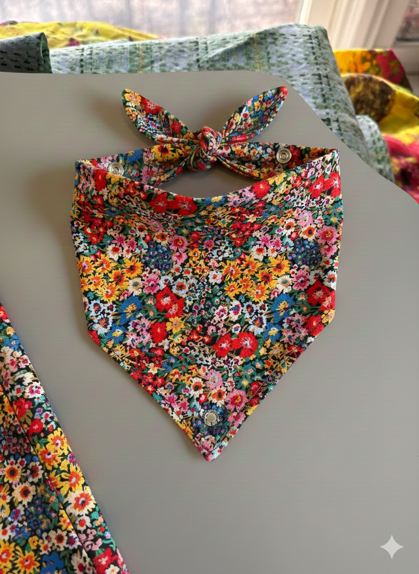 Dress your pup in blooming style with this cheerful floral dog or cat bandana, perfect for spring and summer adventures!