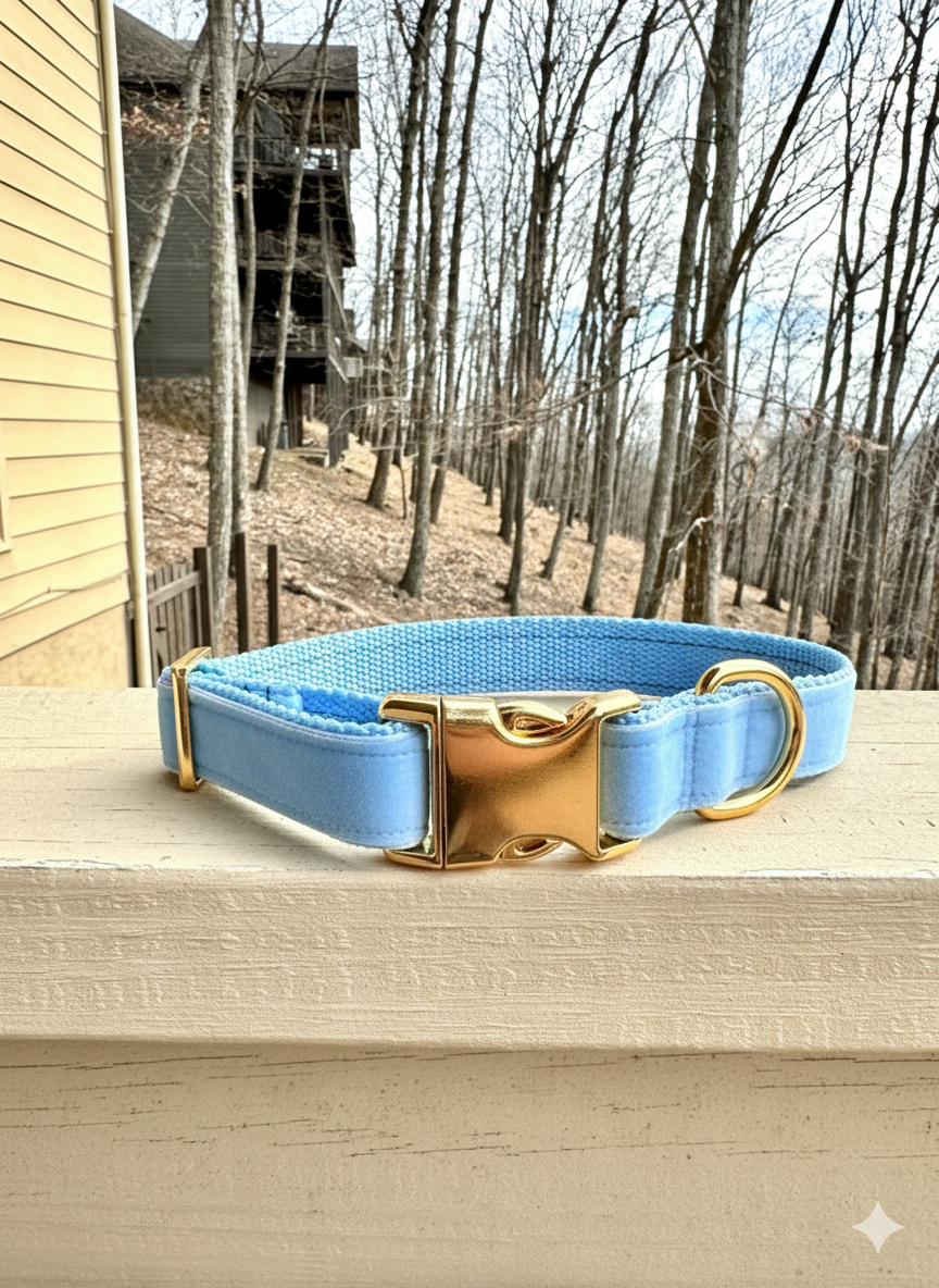 Light Blue Premium Velvet Dog Collar 1" Width - 2 Sizes