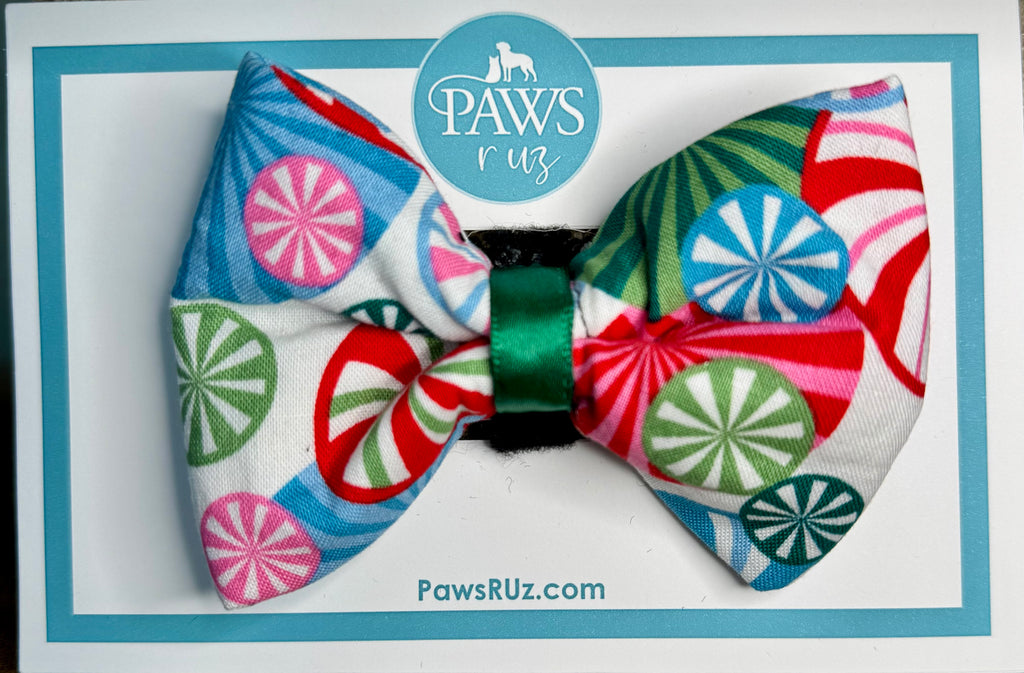 Peppermint Swirl Dog or Cat Bow Tie with Easy Velcro Bow Tie