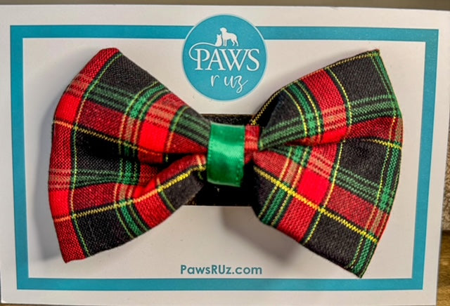 Holiday Plaid Dog or Cat Bow Tie with Easy Velcro Closure