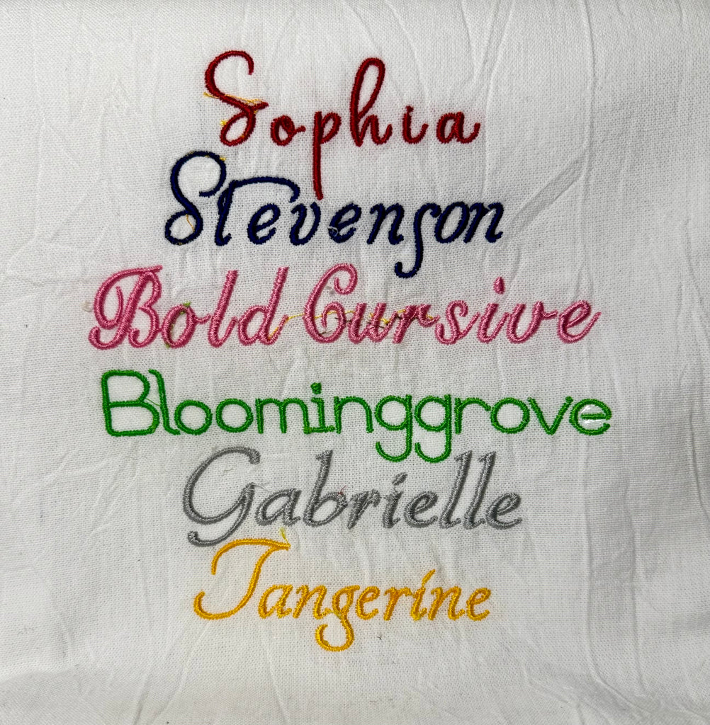 - The font size will be determined by the size of the bandana purchased