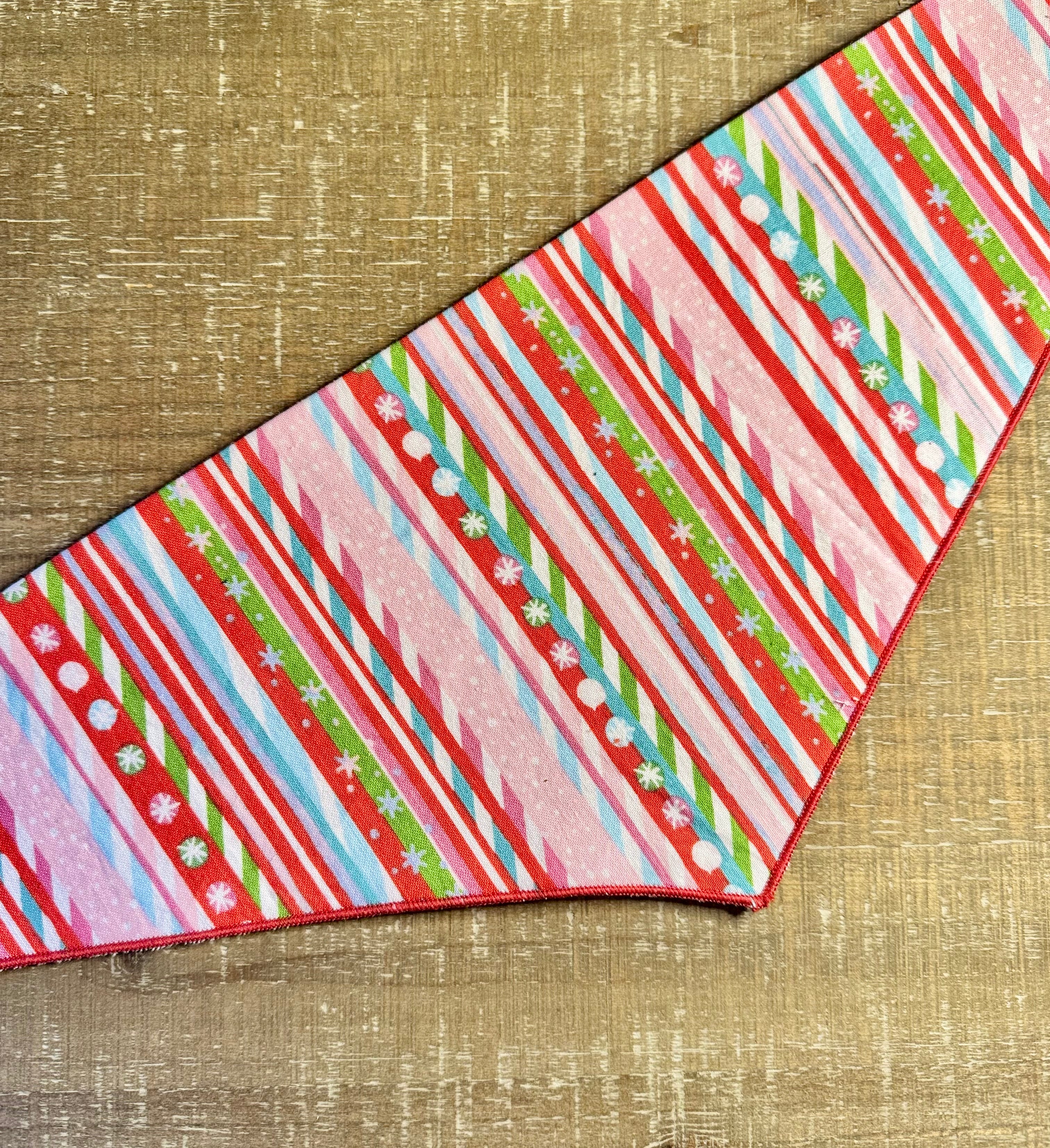 Sweeten up your pup’s holiday wardrobe with this delightful candy cane-inspired bandana! Bursting with cheerful colors and playful patterns, this festive accessory is perfect for spreading joy all season long.