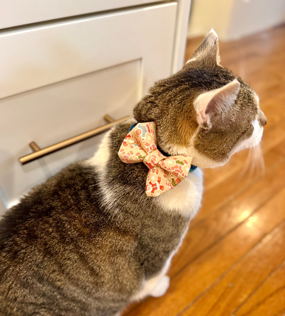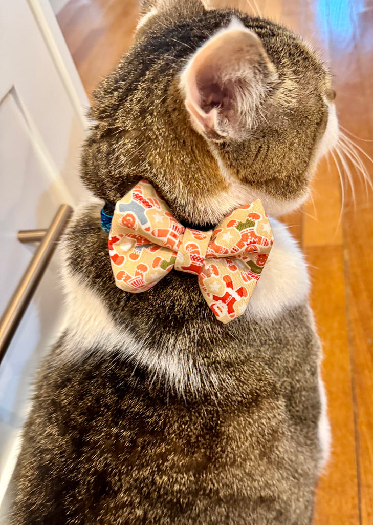 Treat your pet to the sweetest style of the season with this adorable gingerbread-themed dog or cat bow tie! Featuring charming cookie characters and festive details, this delightful accessory captures all the warmth and whimsy of holiday baking.