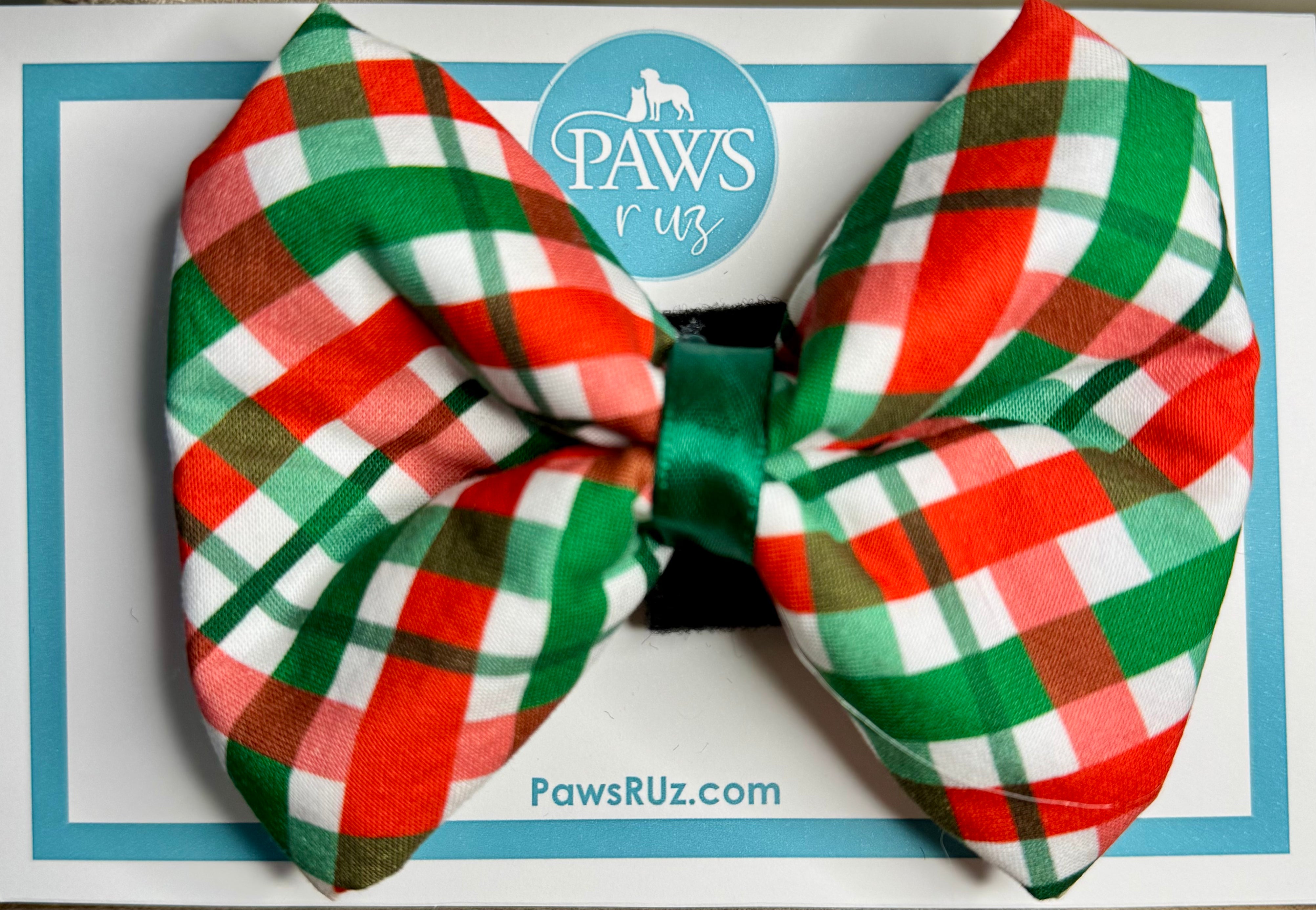 Holiday Plaid Dog or Cat Bow Tie with Easy Velcro Closure