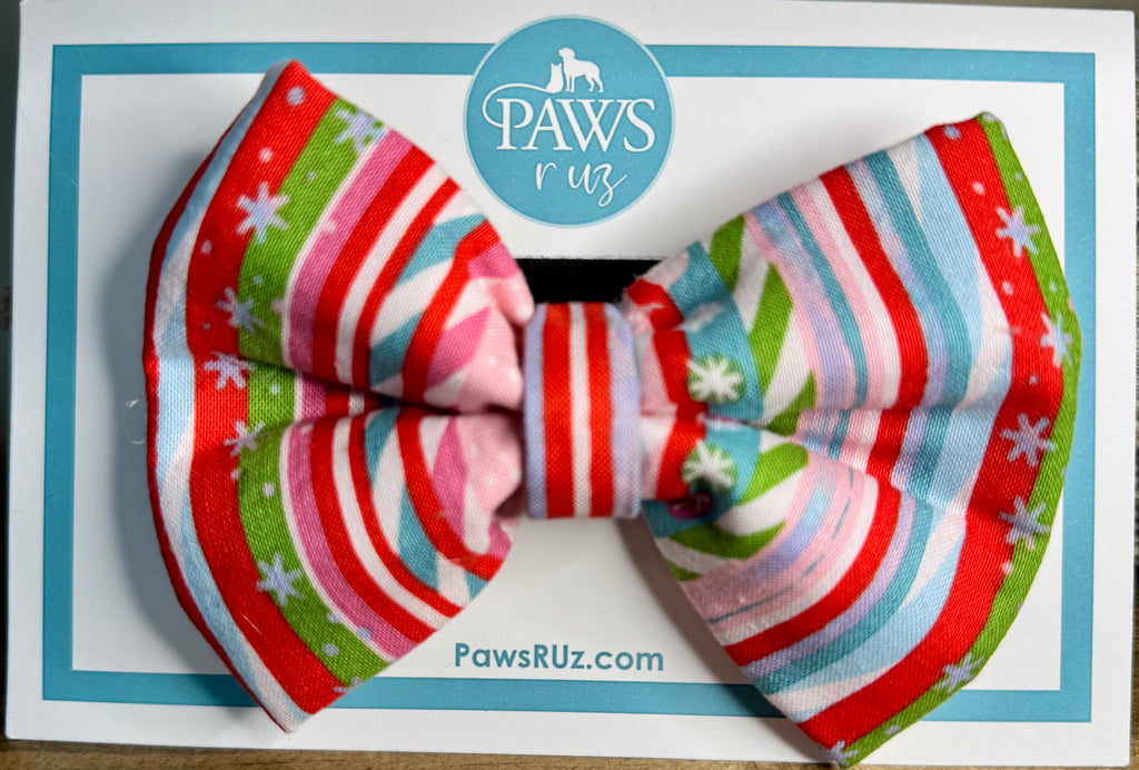 Candy Cane Stripes Dog or Cat Bow Tie with Easy Velcro Closure