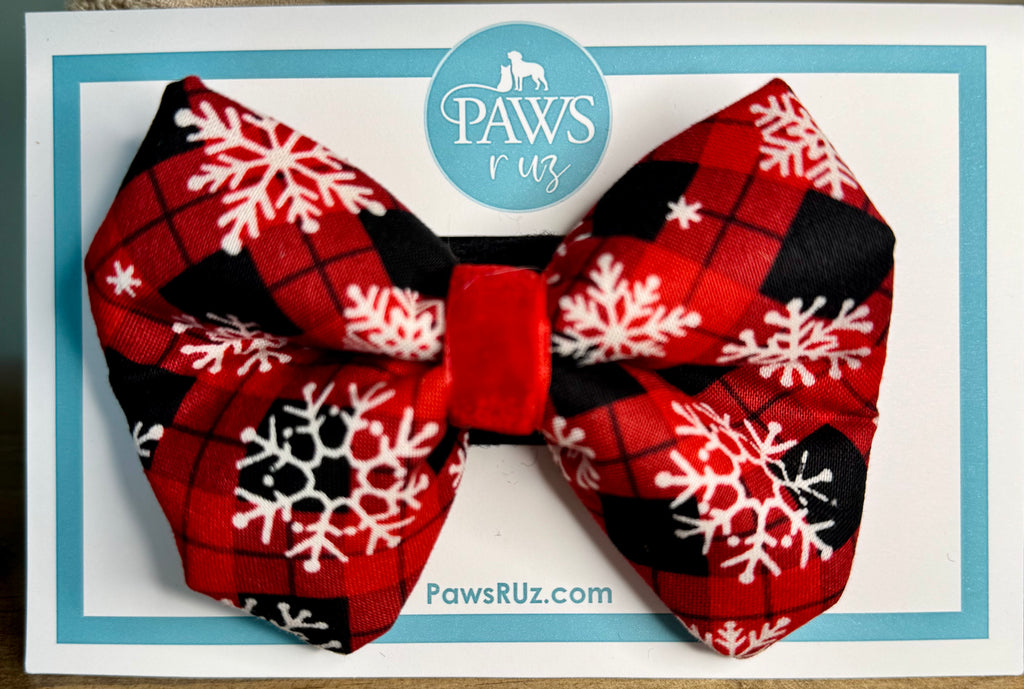 Buffalo Plaid Snowflake Dog or Cat Bow Tie with Easy Velcro Closure