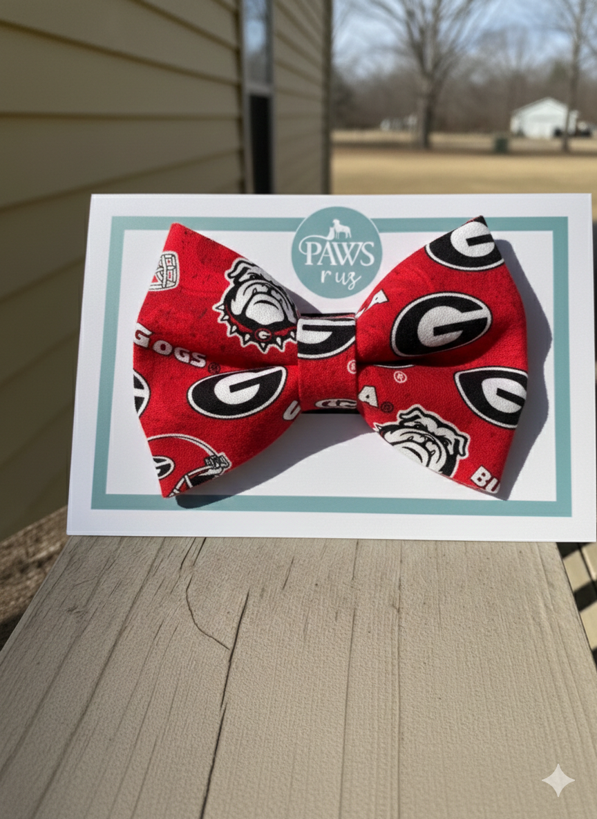 Elevate your Georgia Bulldog's style with this striking black and red bow tie, inspired by the iconic colors of UGA athletics. Available in three sizes to ensure a perfect fit for dogs of all breeds, this accessory combines spirited team pride with polished sophistication. Whether you're heading to game day or a special occasion, your pup will look championship-ready.