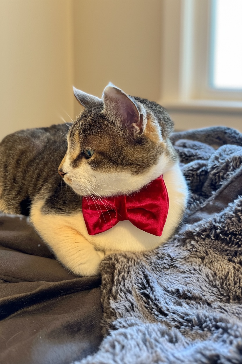 Transform your cat or dog into pure elegance with this stunning red velvet bow tie. The luxurious crushed velvet fabric has a beautiful sheen that catches the light, creating a sophisticated and festive look. Perfect for holiday celebrations, Christmas card photos, or any formal event where your furry friend needs to look absolutely dapper. The rich texture and deep red color exude luxury and refinement.