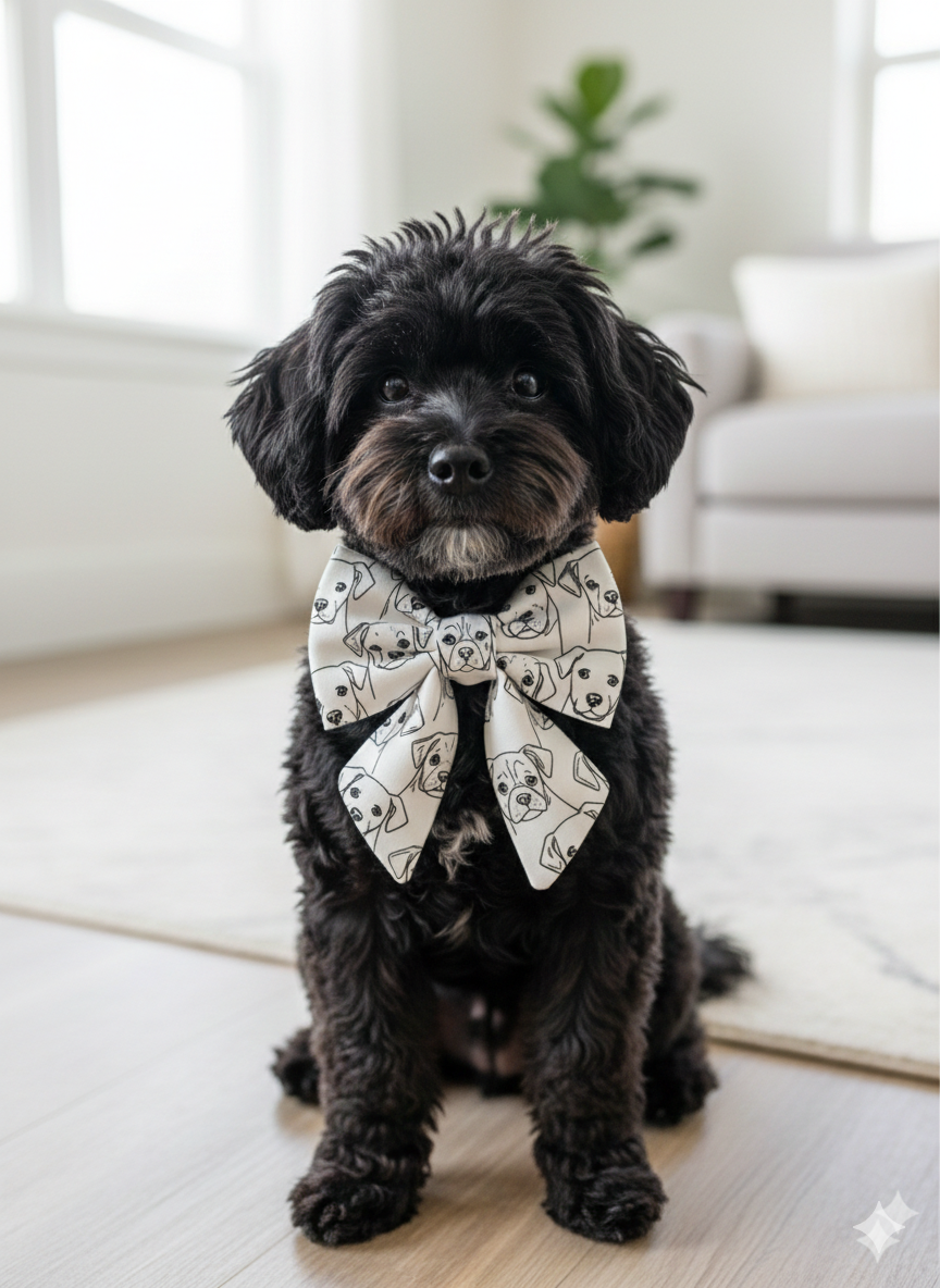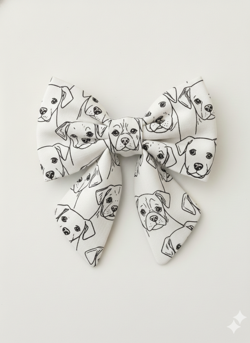 Because it is monochrome, this bow matches everything—whether your dog is wearing a bright red collar, a leather harness, or a simple chain. The sketchbook style adds a touch of whimsy while maintaining a clean, contemporary look.