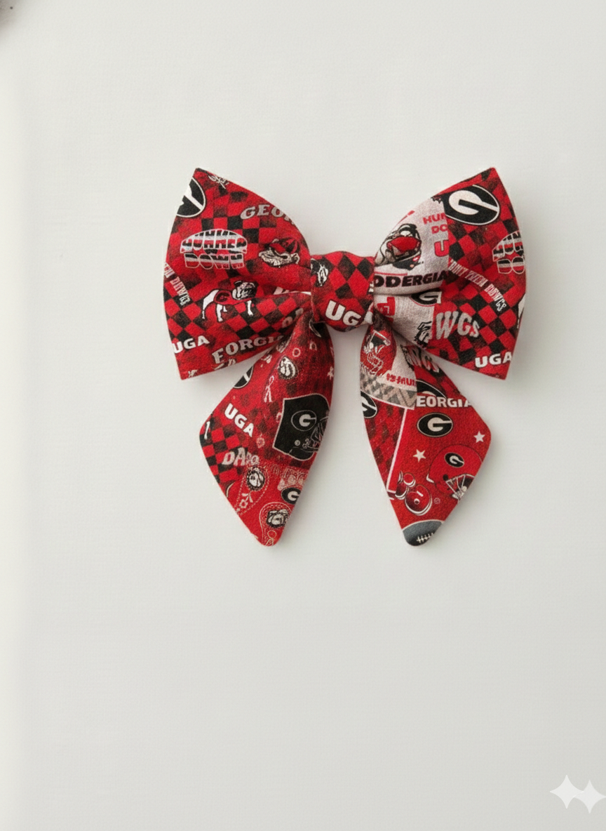Let your furry friend showcase their Georgia pride with this charming lady sailor bow, available in three versatile sizes for the perfect fit.