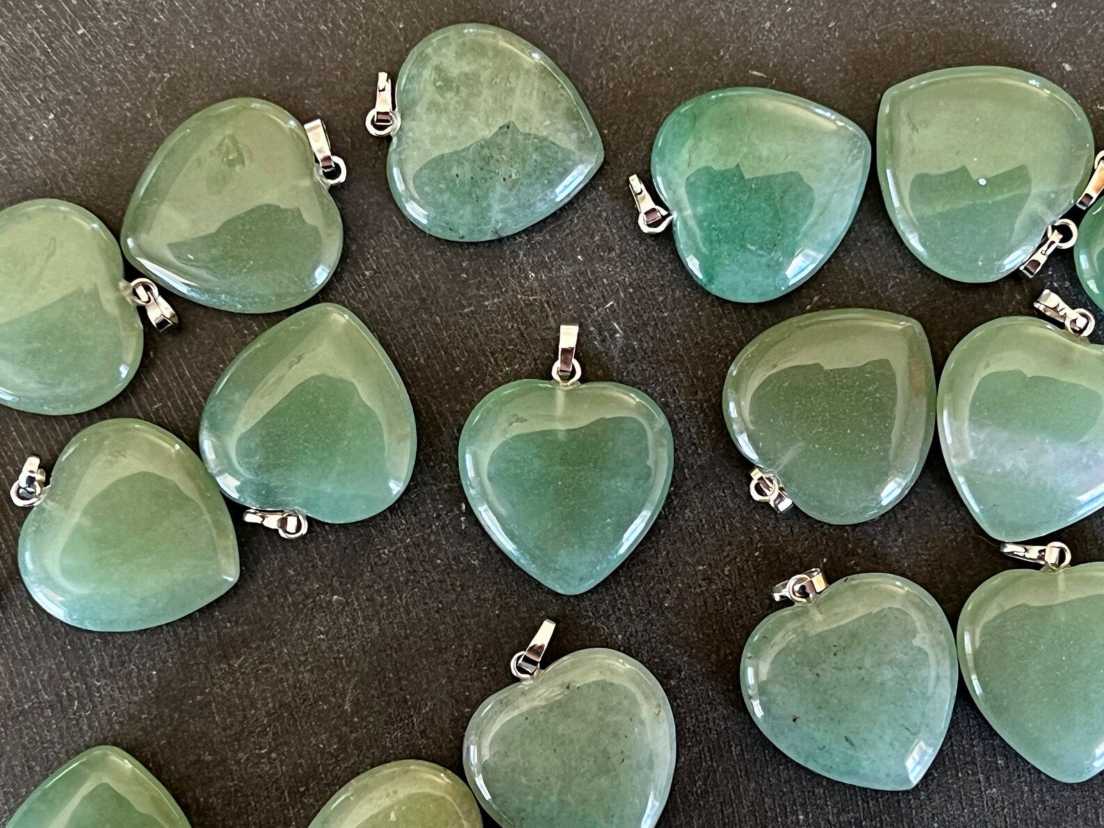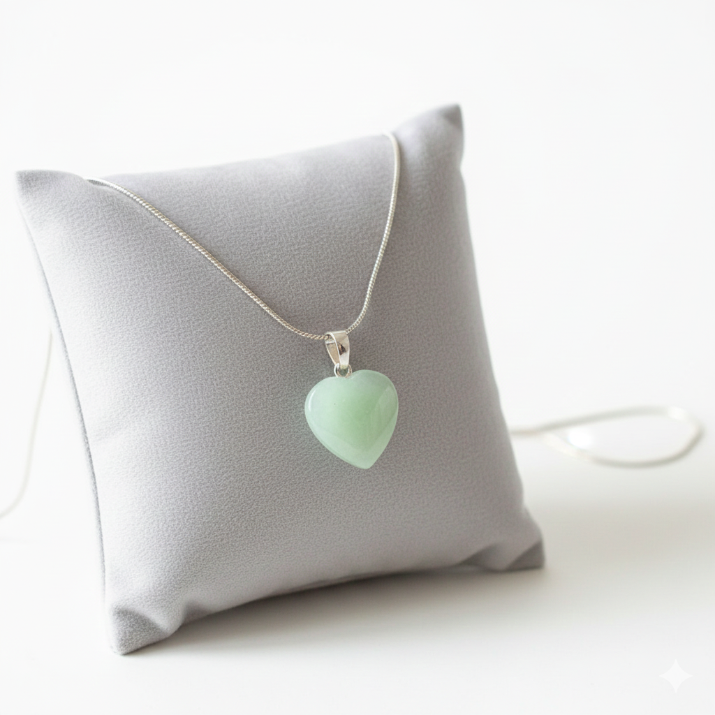 Discover the serene beauty of this genuine green Aventurine pendant, a natural stone treasure crafted for those who appreciate authentic gemstones. This puffed heart design showcases the stone's characteristic light green hues in their purest form—completely natural with no treatments or enhancements applied. The pendant features a smooth, rounded profile on both sides, creating an elegant tactile experience.