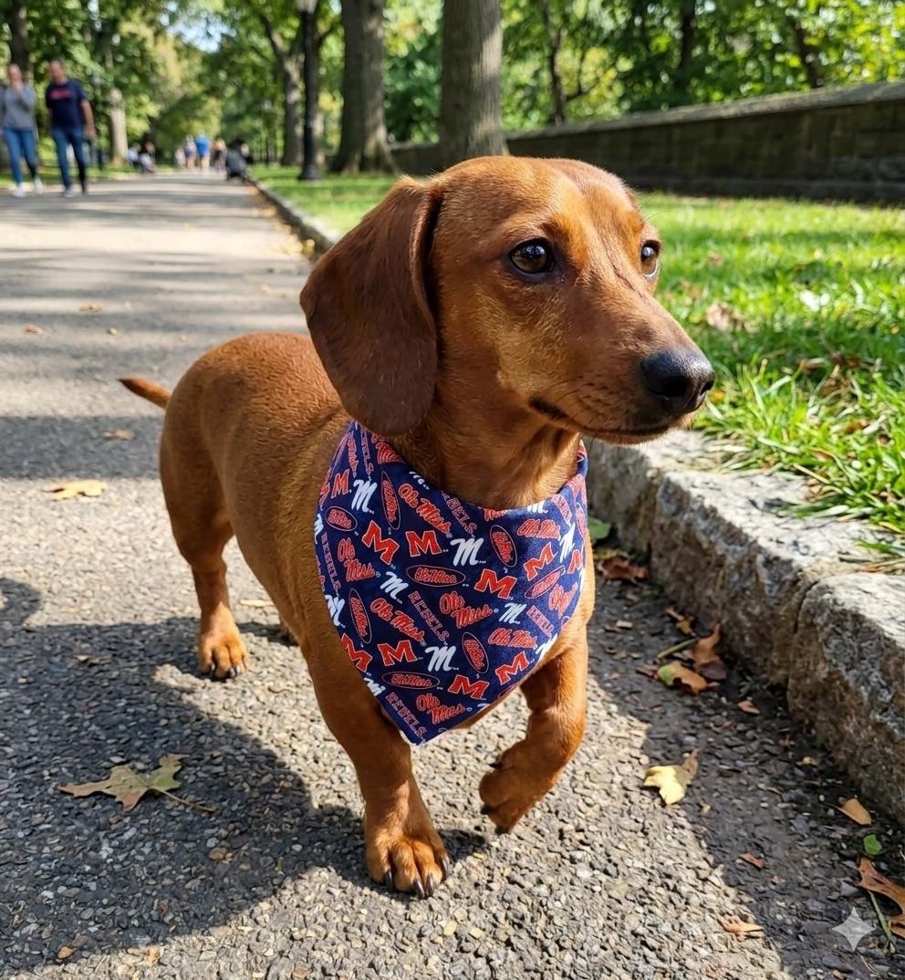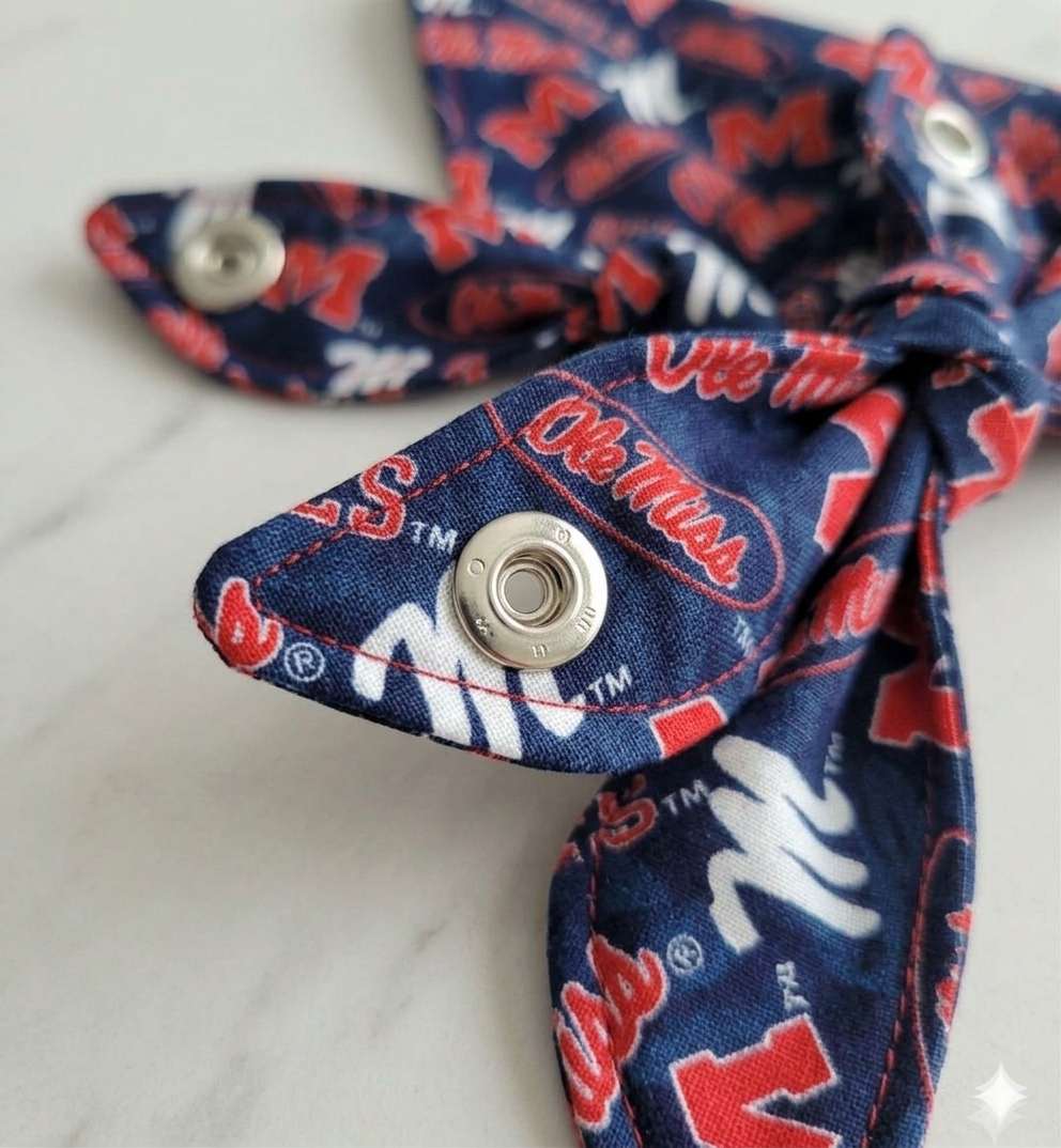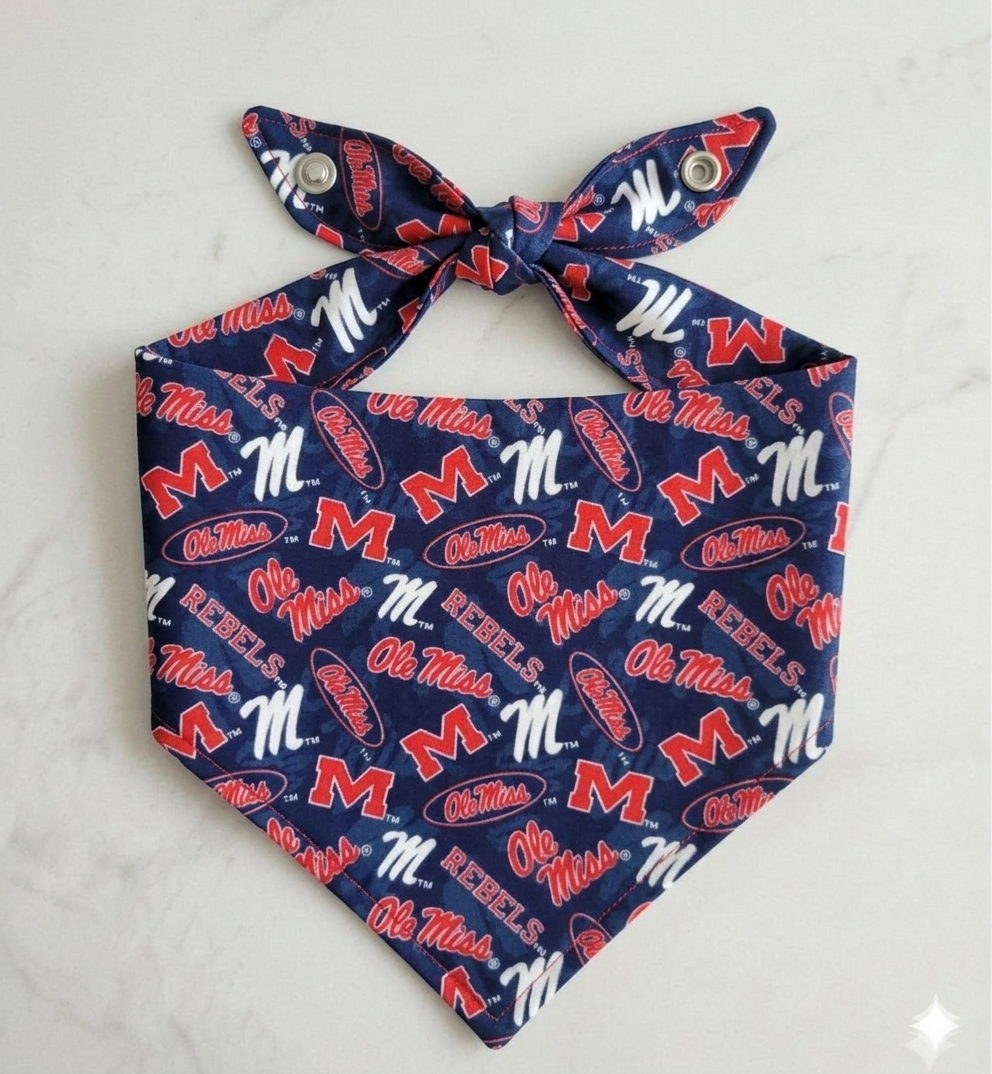 Get your pup ready for a Saturday in the Grove with our handmade Navy and Red game day bandana. Whether you're prepping for a big kickoff or just strolling around the Square, this bandana brings that classic Oxford charm to your dog’s wardrobe.