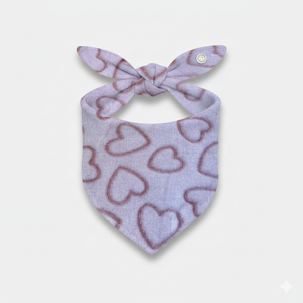 Ultra-soft sherpa minky fabric in pale pink with sweet embossed heart pattern.  This plush, cozy bandana offers cloud-like comfort and adorable style - perfect for snuggly pups who deserve extra softness and love.