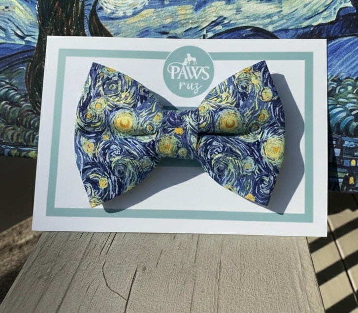 Transform your pet into a masterpiece with this Starry Night-inspired bow tie. Available in three sizes, it features the iconic swirling blues and artistic flair of post-impressionist design. Perfect for pets with refined taste.